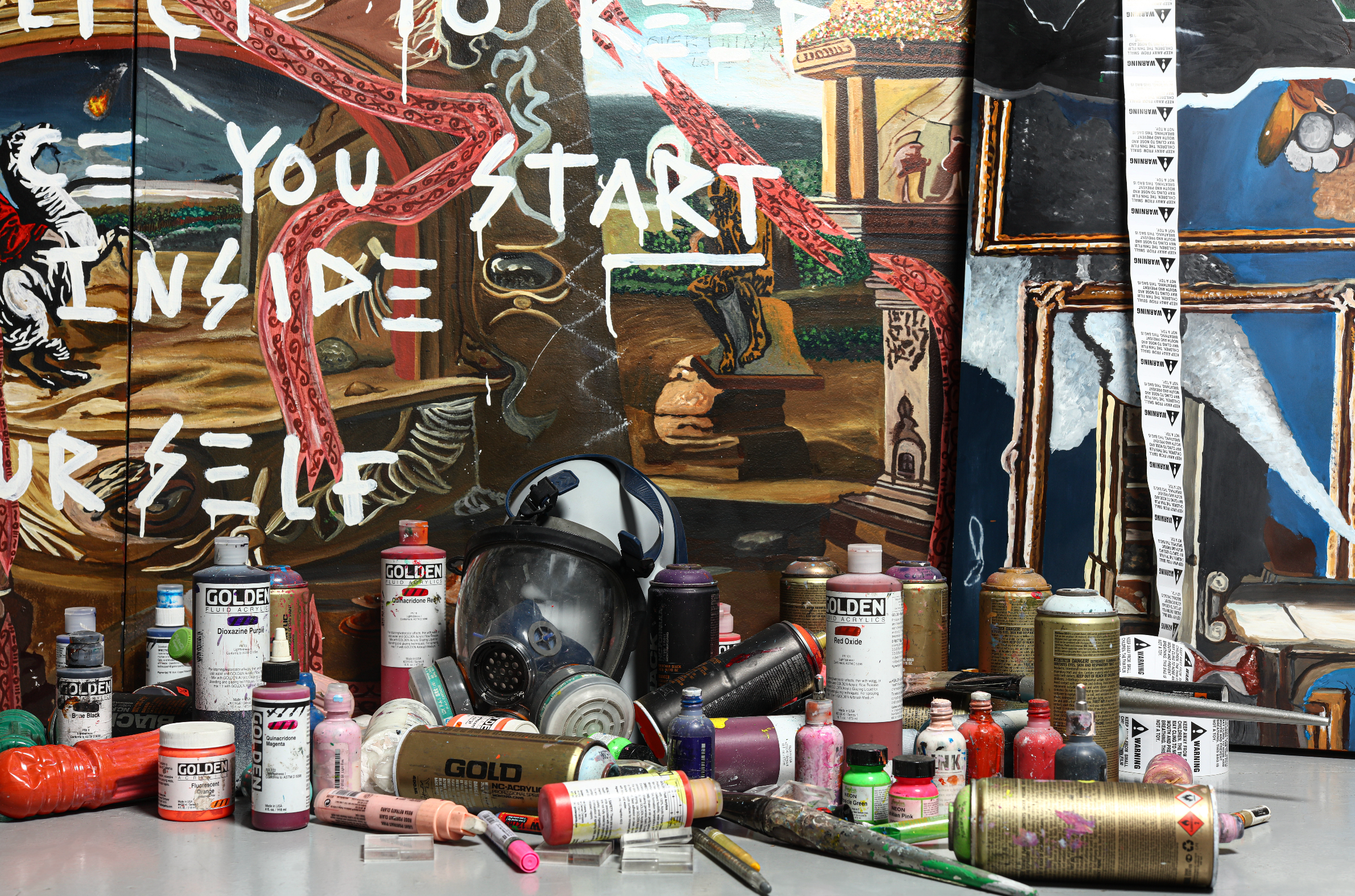 Self-taught artist disrupts norms, crafting a unique blend of pop art that decontextualizes characters, addressing societal issues and connecting art with war materials.
